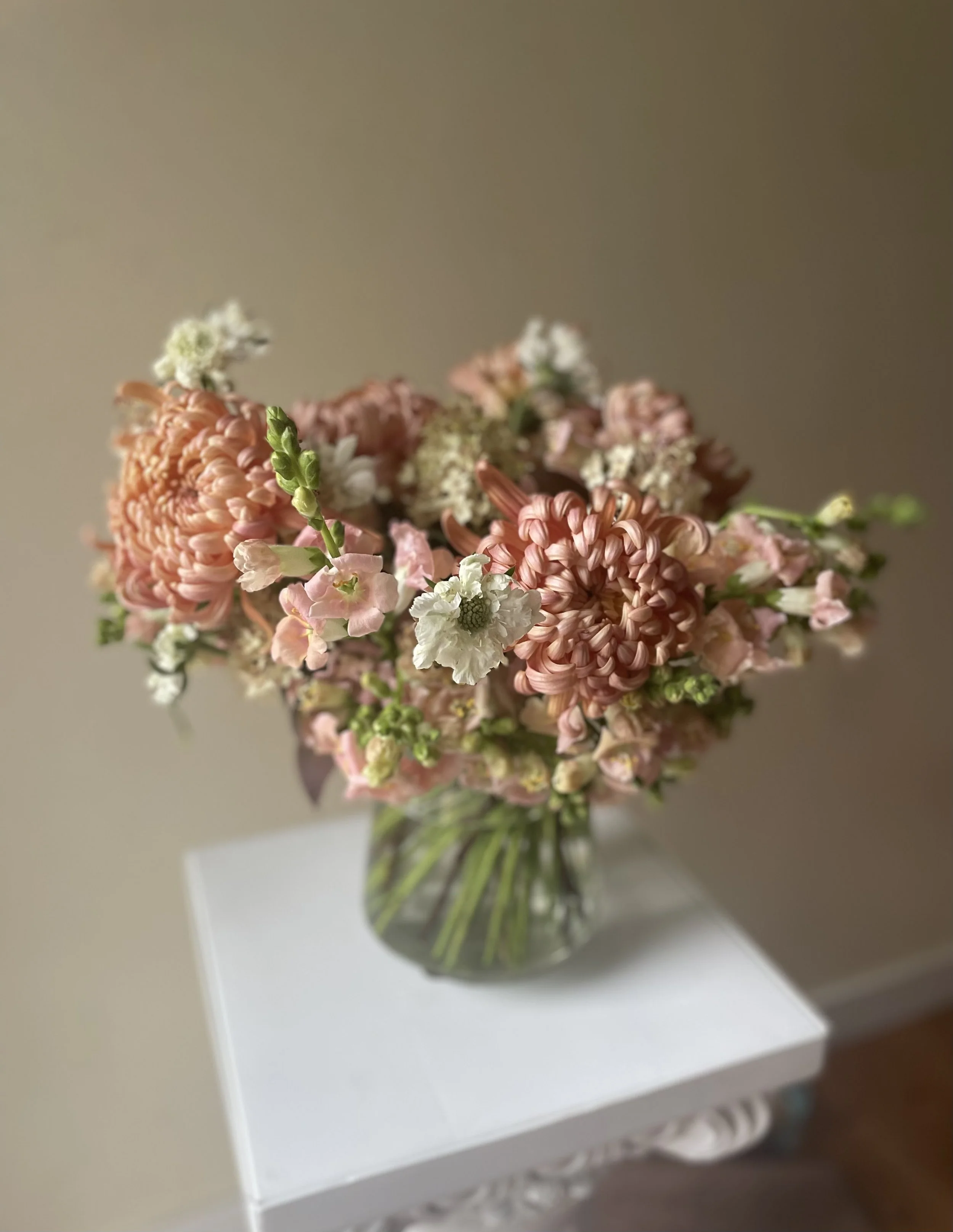 A curated and refined cloud of blooms sourced from the the Seattle Wholesale Grower’s Market Co-Op. With no two exactly alike and a limit of ten sold per week, these bespoke designs are sure to delight with unique blooms, bright colors, and rich texture. Perfect for celebrating the arrival of a new baby, offer condolences, as a romantic surprise, or to treat yourself.